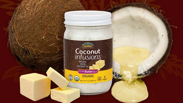 Virgin coconut oil plus natural butter flavor? If it sounds like a dream, think again. Made with plant-based non-GMO ingredients, Ellyndale Organics Coconut Infusions Non-Dairy Butter Flavor is one gloriously creamy coconut butter that works great as a spread or cooking oil.
