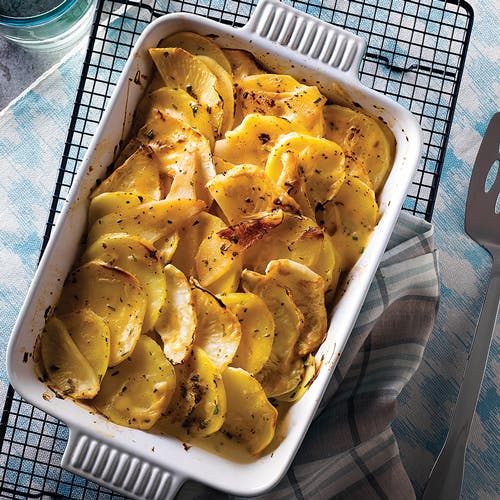 In another twist on the perfect fennel and potato pairing, this lemon-spiked version also gets its flavor from thyme, garlic, green onions and sour cream, weighing in at only 3 grams of fat per serving!