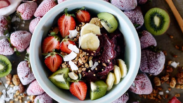 Avocado adds a delectable creaminess to this clean smoothie bowl that gets its sweetness from natural sources like banana and berries.
