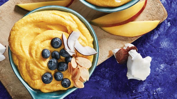 Sweet mango and coconut butter bring a taste of the tropics to your morning. Here, we use cold cauliflower to add fiber and antioxidant value -– but don’t worry, the mango is the flavor that shines in this gorgeous bowl.