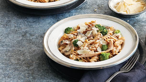 A handful of pantry staples and a few fresh veggies are all you need to transform leftover turkey breast into this quick and satisfying take on the classic pasta dish. Feel free to substitute chicken for the turkey if that’s what you have on hand.
