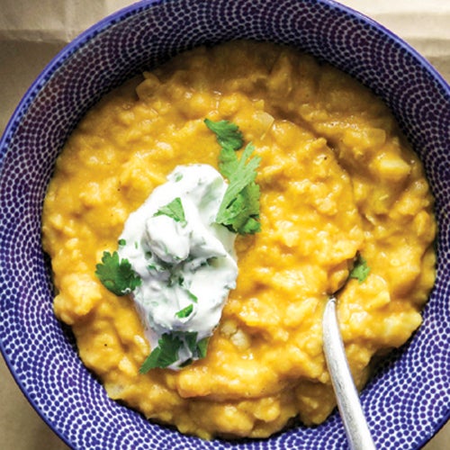 Cauliflower & Red Lentil Soup with Cilantro Yogurt