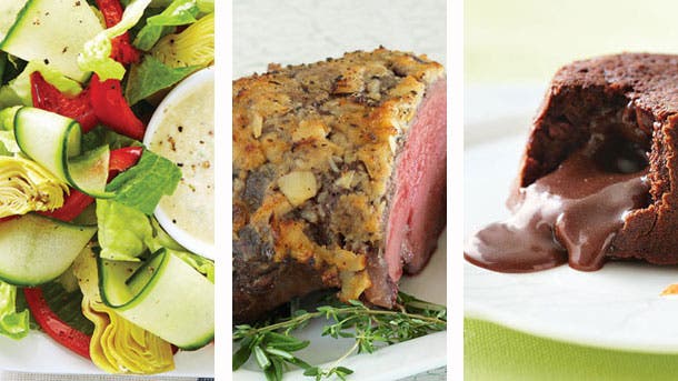 Enjoy a 5-star steakhouse dinner complete with gourmet salad, beef tenderloin and a classic lava cake without fighting the crowds for a reservation. Begin with a Romaine & Artichoke Salad bursting with vibrant colors and textures, served with a dijon dressing. The beef tenderloin is so tender it’s reminiscent of filet mignon. Although it only takes 20 minutes of prep, the tenderloin needs 2 hours to roast. Put it in the oven before your date arrives and finish preparing the salad and dessert together. At only 250 calories, the Molten Lava Cakes provide a decadent, rich finale to your evening.