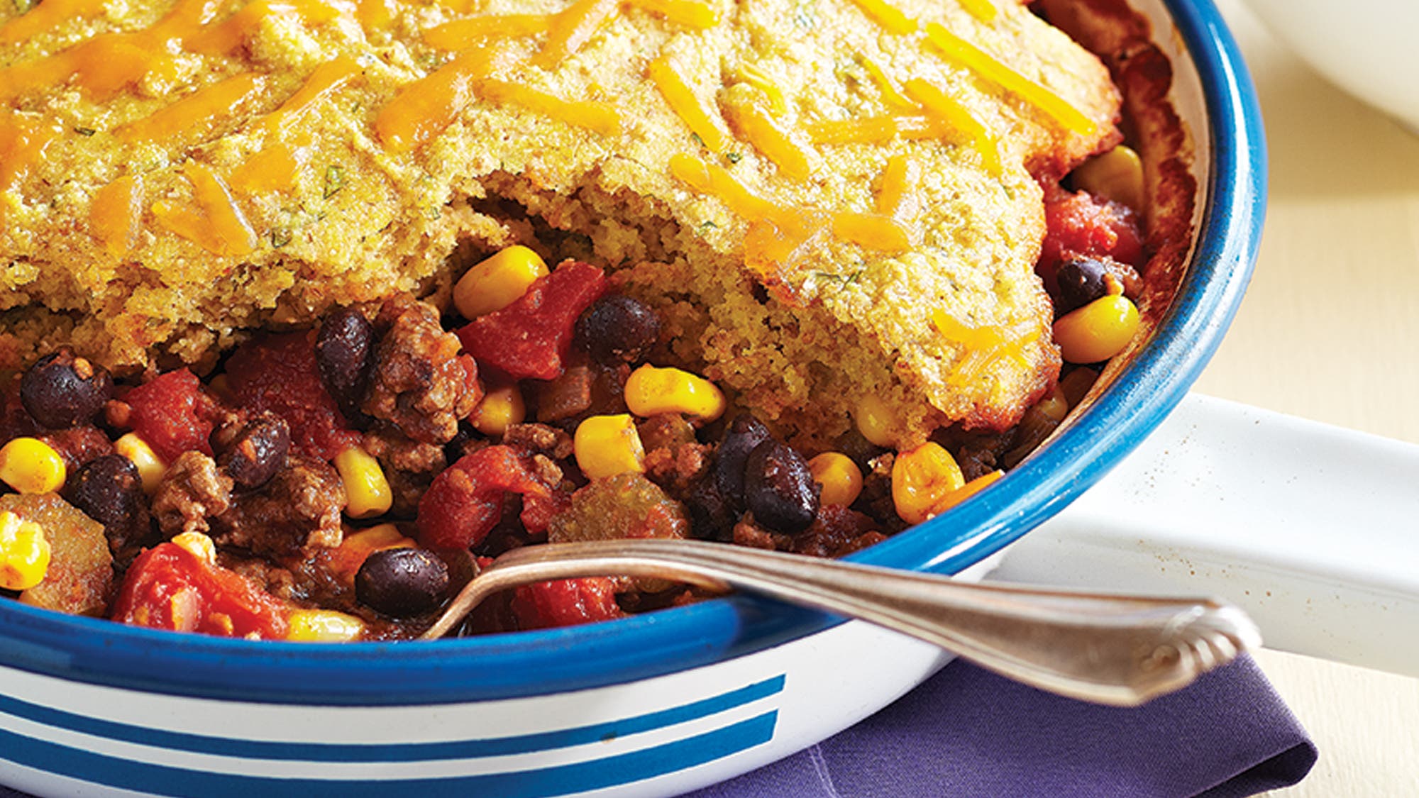 A one-skillet twist on a traditional chili with corn bread, this clean eating chili uses both lean beef and black beans for a satisfying protein punch.
