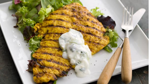 One part Middle Eastern spice-rubbed chicken, one part cucumber yogurt sauce, this chicken dish is an excellent source of lean protein, rich in manganese and vitamin B6.