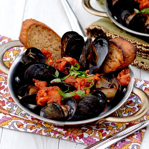 2 lb mussels, debearded and scrubbed (TIP: Before using, tap mussels to check for freshness and discard any that do not close when tapped.)