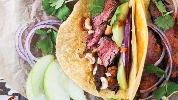 These tacos are as rejuvenating as they are mouthwatering. Not only is red meat full of energizing iron; cilantro is too!