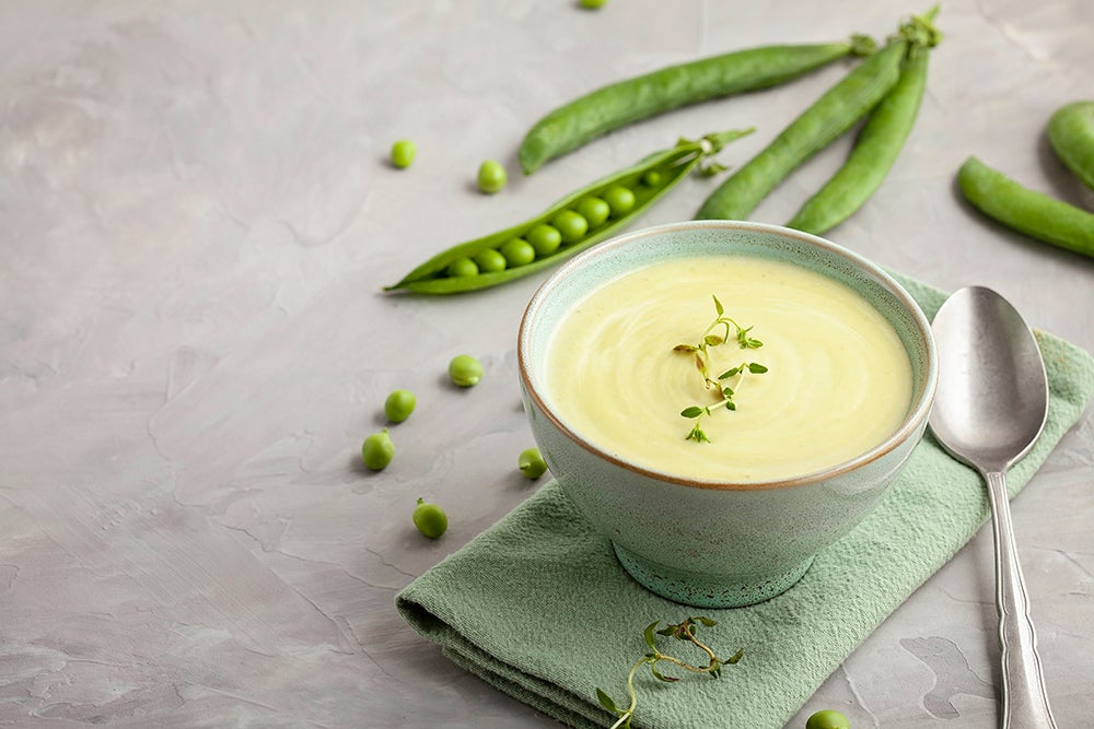 While this soup may seem virtuous with a trifecta of healthful green vegetables, including green peas, baby spinach and asparagus, it tastes anything but. Fragrant herbs and green onions add zing, and a dollop of crème fraîche adds a touch of indulgence to the soup.