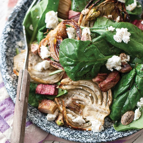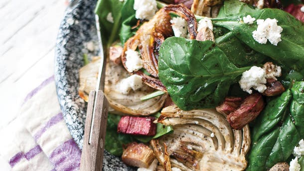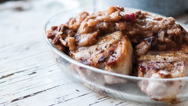 Give your pork chops a nutritional boost with a flavorful rhubarb sauce. Rhubarb is full of fiber, which makes it great for aiding digestion. It’s also a great source of vitamin C and K, plus phytonutrients for glowing skin.