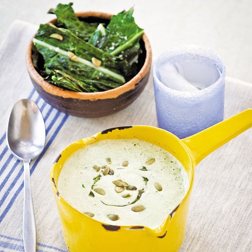 Cream of Kale Soup This warm, creamy soup is perfect as a side or main dish for lunch. It’s loaded with antioxidants and one serving has 5 grams of protein. For similar recipes, check out Jennifer Iserloh’s cookbook Fifty Shades of Kale.