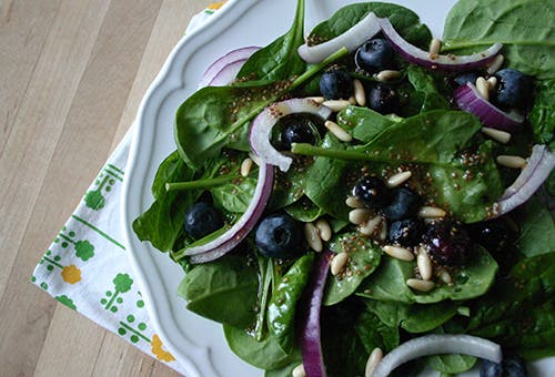 Whisk all ingredients in small bowl until combined. Toss in a large bowl with your favorite salad ingredients (pairs well with blueberries and red onion) and enjoy.