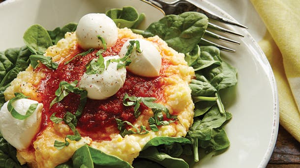 You won’t miss that take-out pizza with this recipe for creamy polenta topped with mozzarella and tomato sauce from Great Bowls of Food.