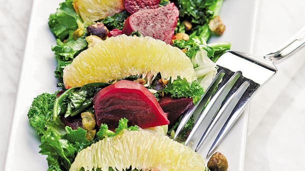Kalerotica...this dish is a decadent feast of plants’ finest molecules. Uridine in beets boosts mood. The spice in ginger hones your senses. The natural opoids in citrus open your mind to possibility. And honey sweetens the deal.