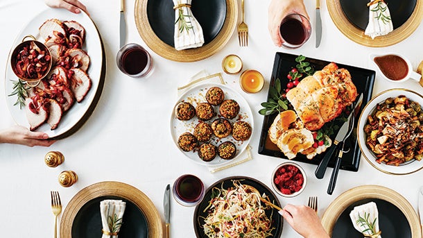The stuffing in this rolled-up turkey breast is a lot like traditional stuffing, but instead of being in the cavity of the bird, it’s in a ribbon throughout the meat. So each no-carving-necessary slice has a spiral of bready, herb-laced goodness.