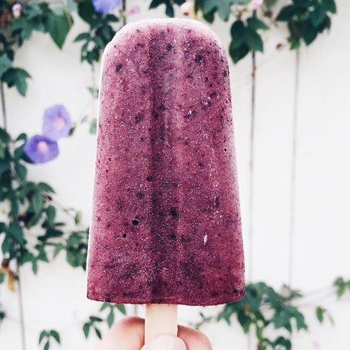 In a blender, combine all ingredients (except for bee pollen). Keep half for a smoothie right now and use the other half to fill popsicle molds. Insert sticks, sprinkle bee pollen on top and freeze for at least six hours.