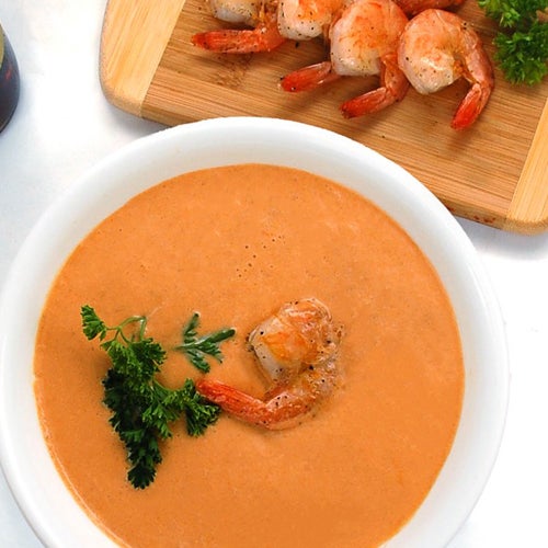Add the stock, shrimp, salt, and pepper to the pan, and heat until the shrimp are pink and cooked through.