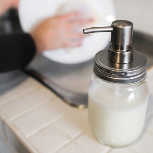Conventional dishwashing liquids can be harsh on more than just your hands– phosphate-containing detergents are also hard on the environment. According to the National Institute of Environmental Health Sciences, hormone-disrupting chemicals found in conventional products such as dish soap may have developmental, reproductive, neurological and immune effects in both humans and wildlife. Either choose a CE-approved dish liquid or make your own! This dish wash is easy to make and uses nontoxic ingredients that will leave your dishes sparkling and your hands silky.