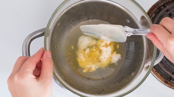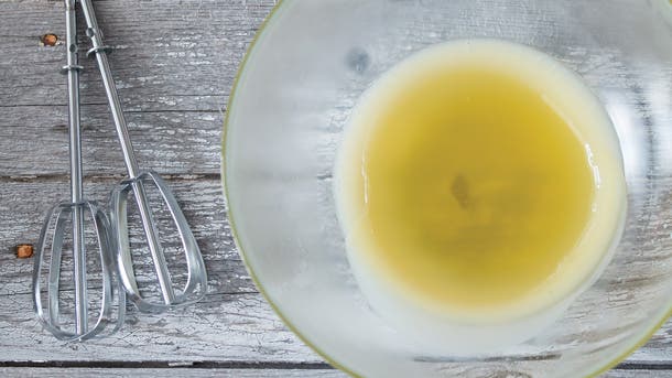 Remove bowl from heat and add in vitamin E and orange oil. Whisk until combined.