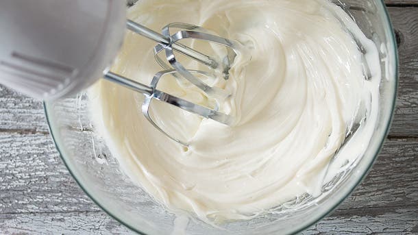 Remove bowl from freezer. Using an electric hand mixer on high, beat mixture for 1 to 2 minutes, until a fluffy, butter like consistency is achieved.