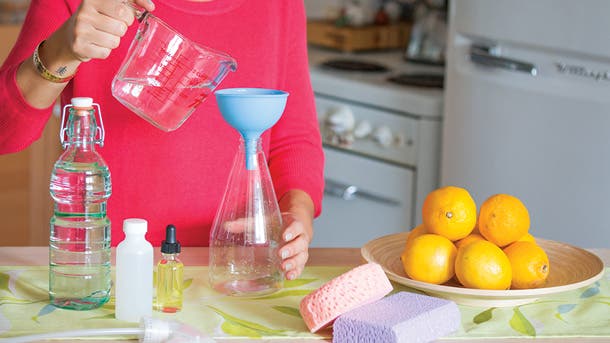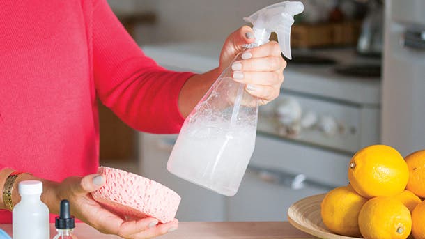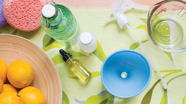 Vinegar, witch hazel and essential oils such as lemon, orange, lavender and peppermint are all natural disinfectants that can tackle nearly any household mess.