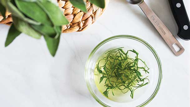 3. Remove sage leaves from water and add sage water to juice-oil mixture.