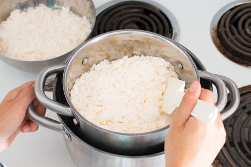 3. Using a double boiler or 2 different sized pots, melt wax flakes. If you can’t fit all wax flakes into pot at once, add flakes gradually.