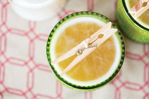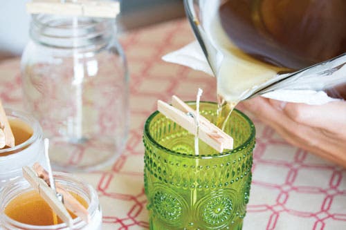 Tip: Don’t worry if you spill some, as soy wax scrapes off surfaces easily and can be removed from fabric in the wash.