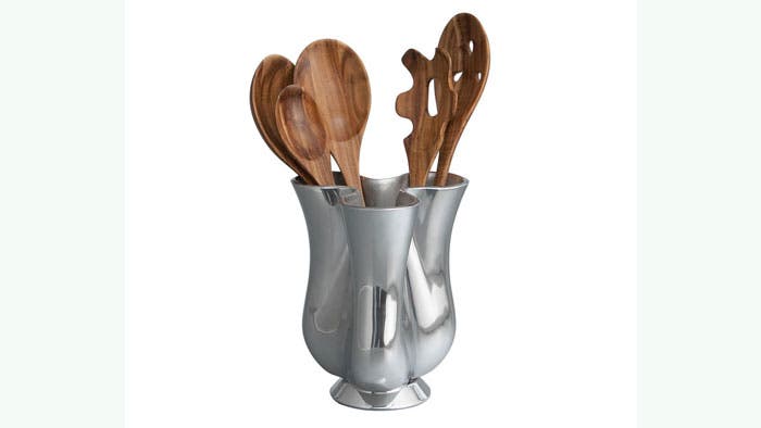 The flower vase–inspired Nambé Tulip Jug comes equipped with a set of utensils carved from natural wood. Housed in an alloy jug, this set makes a sophisticated addition to any kitchen. $150, allmodern.com
