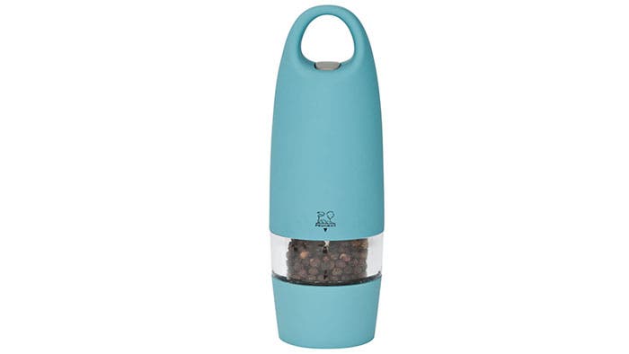 With the touch of a button, the electric Peugeot Zest Mills yield fine or coarse freshly ground peppercorns or salt crystals. The salt mill contains a stainless steel mechanism to prevent corrosion while the pepper mill’s double row of teeth are designed for the ideal grind. $40, cutleryandmore.com
