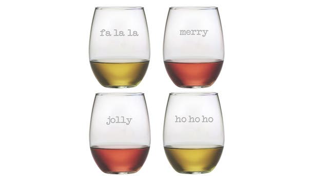 Even though the Susquehanna Glass Fa La La Stemless Wine Glasses are designed for wine, these cheery vessels are also a great choice for serving up cider, eggnog, sparkling water and more.
