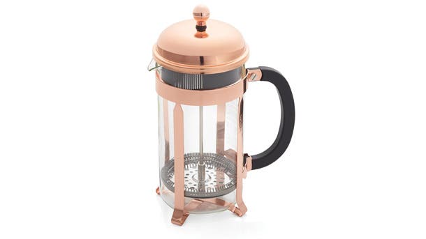 The Bodum Chambord Copper 34 Ounce French Press is a beautiful gift for the coffee connoisseur. With its gorgeous dome-shaped top, this efficient press brews full-bodied, rich-tasting coffee in four minutes.