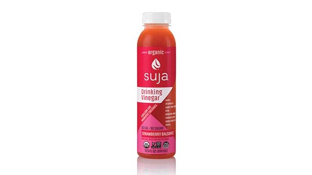 Apple cider vinegar is combined with balsamic vinegar, water, lime, strawberry, probiotics, stevia and coconut nectar for a sweet, fruity taste and plenty of vitamin C. $3, sujajuice.com
