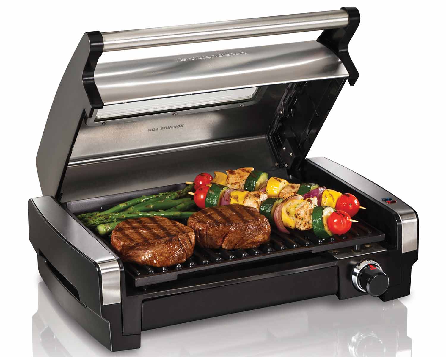 This compact yet powerful searing grill from Hamilton Beach will revolutionize your grilling experience. Safe to use indoors, cook meats to perfection using the tool’s versatile temperature range, ceramic nonstick grilling plate, and extra-large drip tray that makes cleaning up a breeze.