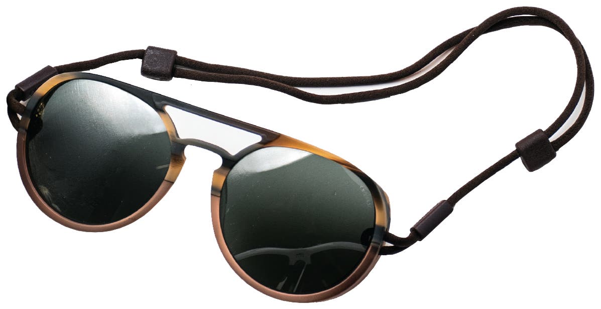Featuring crystal-clear optics with superior sun protection, and a built-in custom-woven, 100% recycled Japanese nylon cord that won’t slip down or fall off.