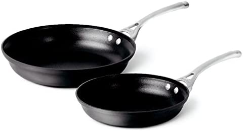 Set of 2 Nonstick Frying Pans. You can cook your foods with less oil when using this set of two nonstick frying pans, sizes 10 and 12-inch. The hard-anodized nonstick surface and wide, flat bottoms heat your food evenly, too.