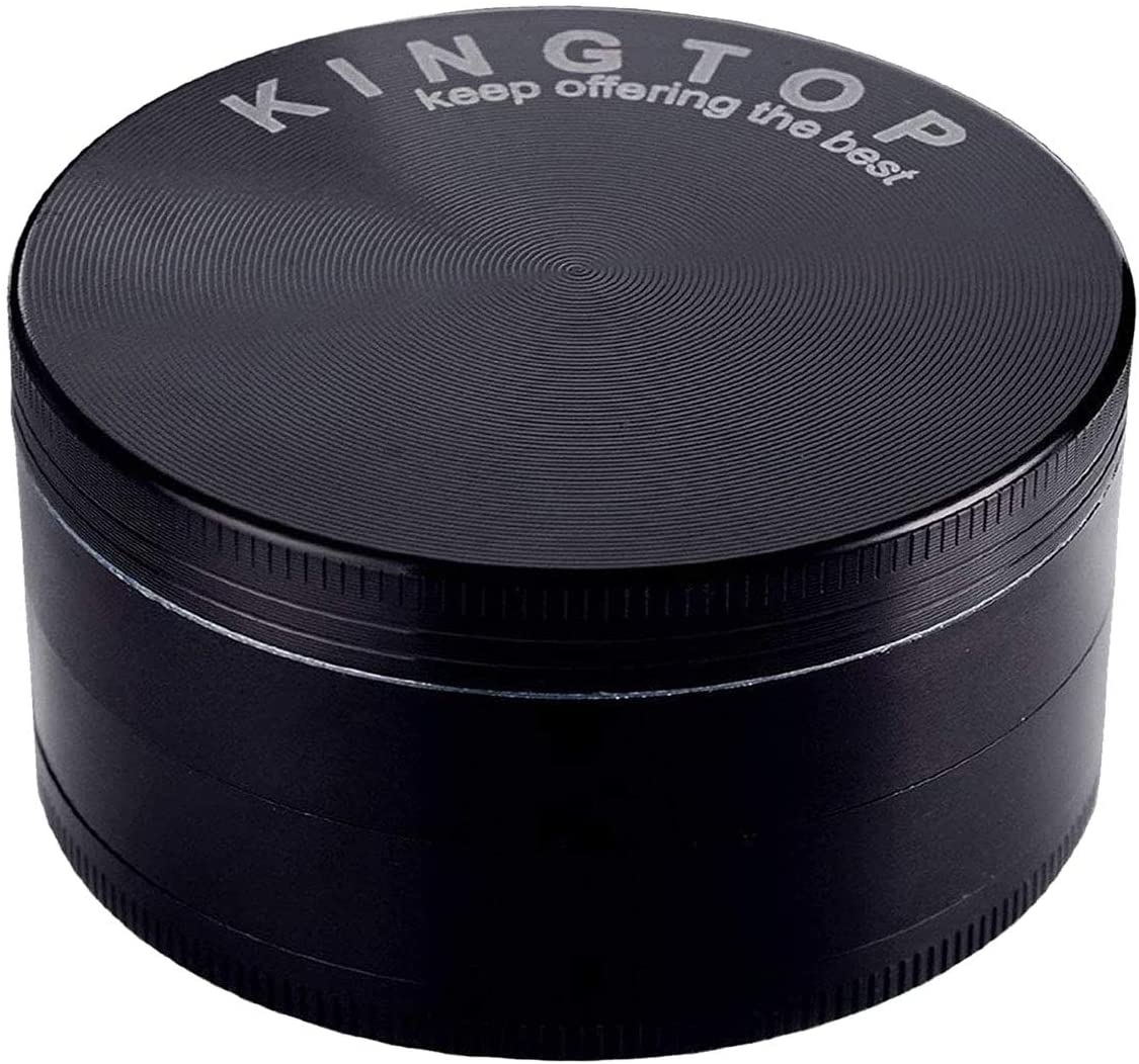 The KINGTOP grinder is 3 inches in diameter and include four pieces (three stages). It features a screen, pollen catcher, scraper, 45 diamond teeth, a magnetic lid, and glide rings for smooth grinding. It also comes in five colors, including a vibrant rainbow design. The real benefit here is that it’s simply larger than the others on this list, so if you’re going to be grinding larger quantities of herbs and spices, this is definitely the mill for you! Purchase Yours Today.
