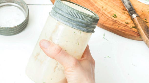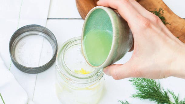 To get started, grab a jar with a lid that holds about two cups of liquid. Mason jars work great for this task.